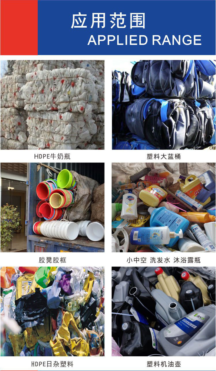 HDPE/PP破碎清洗回收加工生產(chǎn)線(xiàn)將市場(chǎng)或工廠出來(lái)的廢棄的HDPE牛奶瓶、HDPE洗發(fā)水瓶、日常生活日雜、HDPE管材、PE給水管材、HDPE藍(lán)桶、機(jī)油壺等首先進(jìn)行分類(lèi)挑選,分類(lèi)好的HDPE瓶專(zhuān)用破碎機(jī)進(jìn)行破碎,破碎完后經(jīng)過(guò)脫水除污去沙處理,然后進(jìn)行摩擦清洗,去除表面附著物有不干膠紙或加入適當(dāng)shaojian水進(jìn)行去油污處理,洗完后的物料進(jìn)行沉浮分離,HDPE為浮水型塑料,根據(jù)物料的潔凈程度可進(jìn)行多次漂洗分離,漂洗過(guò)后的物料經(jīng)由滾筒式挖斗挖入脫水機(jī)中進(jìn)行脫水,脫水完后的HDPE干凈破碎片可以直接上造粒機(jī),造好的顆??捎糜诟餍懈鳂I(yè)注塑等再次循環(huán)利用。